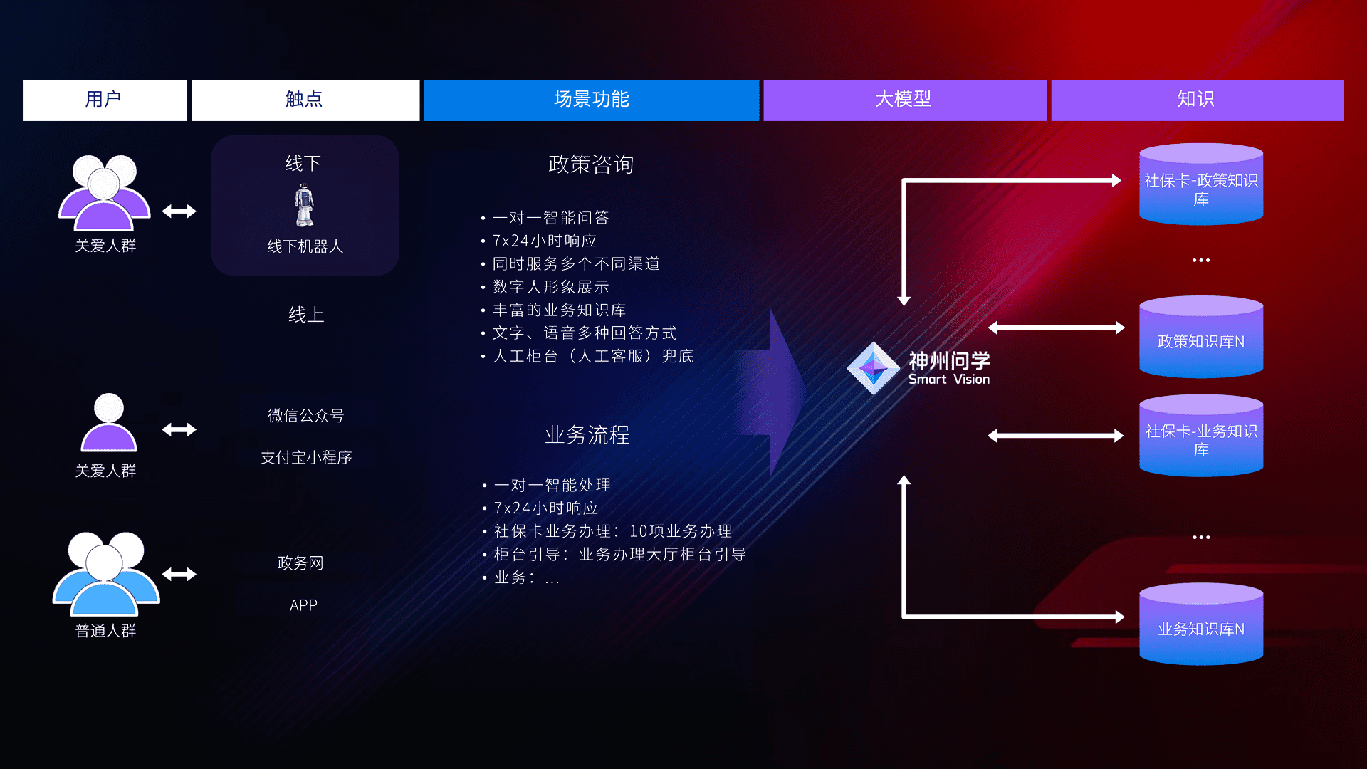 • 利用大语言模型+RAG技术,,,支持多轮对话,,,,可识别多种同义词、、、、近义词,,,精准理解关爱人群语义快速输出结果。。。